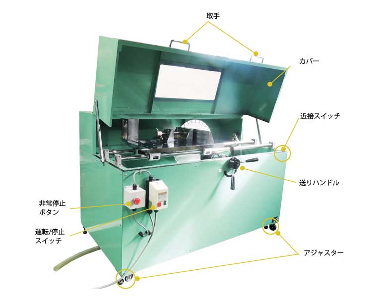 | 切断送り方式 | ラック式手動ハンドル送り |