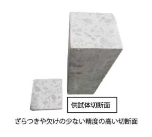 当社のコンクリート切断機「KC-155」は、最大300(W)×300(D)×150(H)mmの供試体サイズに対応した手動ラック送り式の切断機です。